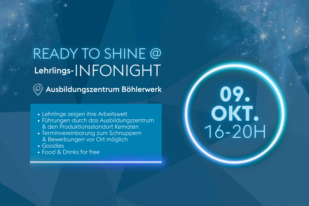 Wir laden interessierte Jugendliche sowie ihre Eltern ein, sich vor Ort über unsere Lehrlingsausbildung zu informieren.- Lehrlinge zeigen ihre Arbeitswelt im Ausbildungszentrum in Böhlerwerk
